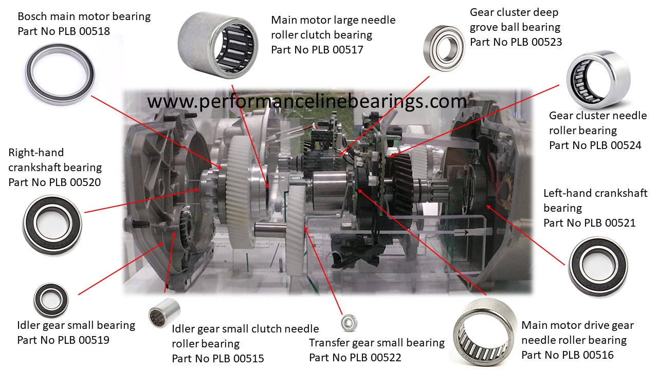 These are all the common bearings in the Bosch ebike Active and Performance Line / CX motors. The bearings shown are the most likely to fail due to wear and tear or water ingress. We can also supply O-rings and circlips for these motors. If what you’re looking for is not shown, please contact us, I am sure we can help.